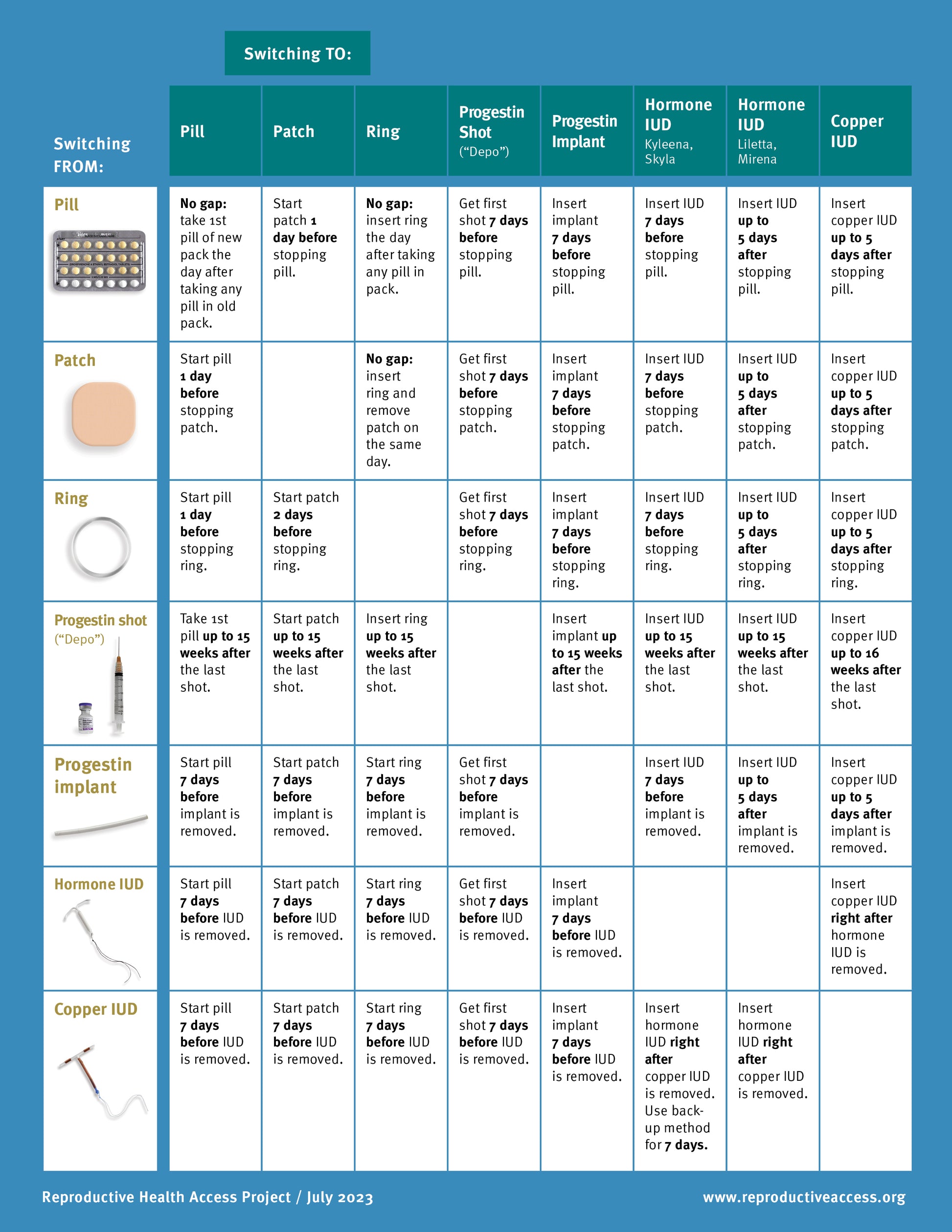 How to Switch Birth Control Methods This fact sheet explains how to switch between birth control methods safely and effectively.